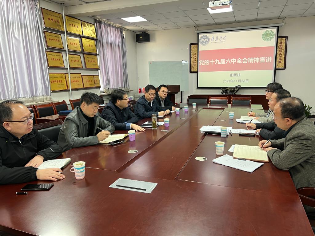 11月26日上午,党委书记张新柱一行在好博体育宣讲党的十九届六中全会精神。生科院相关负责人参加宣讲报告。会上学习了《中国共产党第十九届中央委员会第六次全体会议公报》、《中共中央关于党的百年奋斗重大成就和历史经验的决议》。