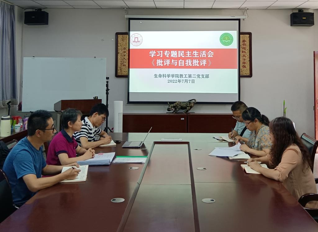 会上,艾银婷在全民族抗战爆发八十五周年纪念日来临之际号召支部全体党员要传承和弘扬伟大抗战精神,以史为鉴,砥砺前行。随后,详细介绍了2022年上半年生科院教工第二党支部的党建工作开展情况、存在的不足和改进措施。接着,支部全体党员逐一对照政治学习、立德树人、加强意识形态、课程思政、教学改革等方面,深刻剖析了个人自身问题,进行了自我批评,也诚恳地提出了其他同志存在的不足。最后,艾银婷希望以此次活动为契机,全体党员能够凝心聚力,创造性地做好师范类专业党政建设,更好地服务于党的事业。