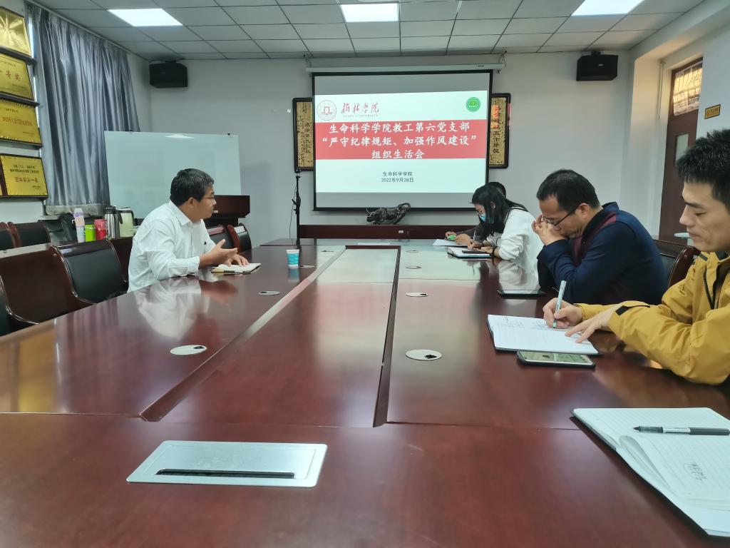 9月28日下午,好博体育教工第六党支部在1S-203会议室召开了“严守纪律规矩,加强作风建设”组织生活会,支部书记王小林及全体党员参加组织生活会,会议由王小林主持。