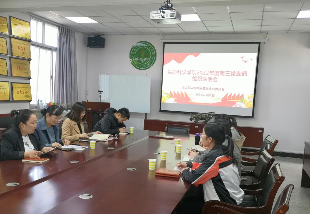为全面贯彻落实中共榆林公司党委《关于认真开好2022年度组织生活会和做好民主评议党员工作的通知》要求。3月7日下午,生科院教工第三党支部在1S-203会议室召开2022年度组织生活会,会议由支部书记王雯主持,支部全体党员参加。
