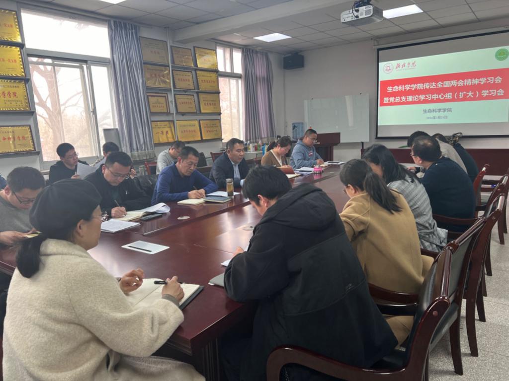 3月21日,好博体育召开传达全国两会精神学习会暨党总支理论学习中心组(扩大)学习会。科级以上干部,各党支部书记、教研室负责人参加学习。党总支书记蔡建昌主持会议。