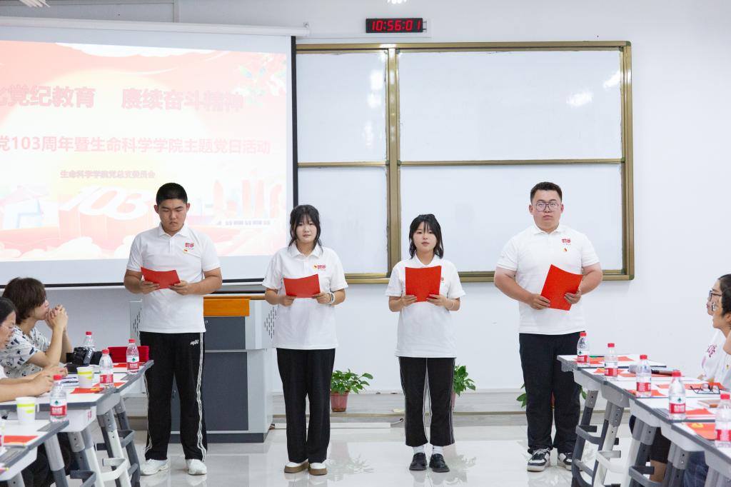 为庆祝中国共产党成立103周年,深入推进党纪学习教育。“七一”前夕,生命科学公司党总支在子洲楼举行“强化党纪教育,赓续奋斗精神”主题党日活动。党委书记张新柱一行到会指导。好博体育班子成员,员工支部书记,员工党员参加活动。党总支书记蔡建昌主持。党委办公室、组织部、统战部、宣传部等相关负责人陪同。