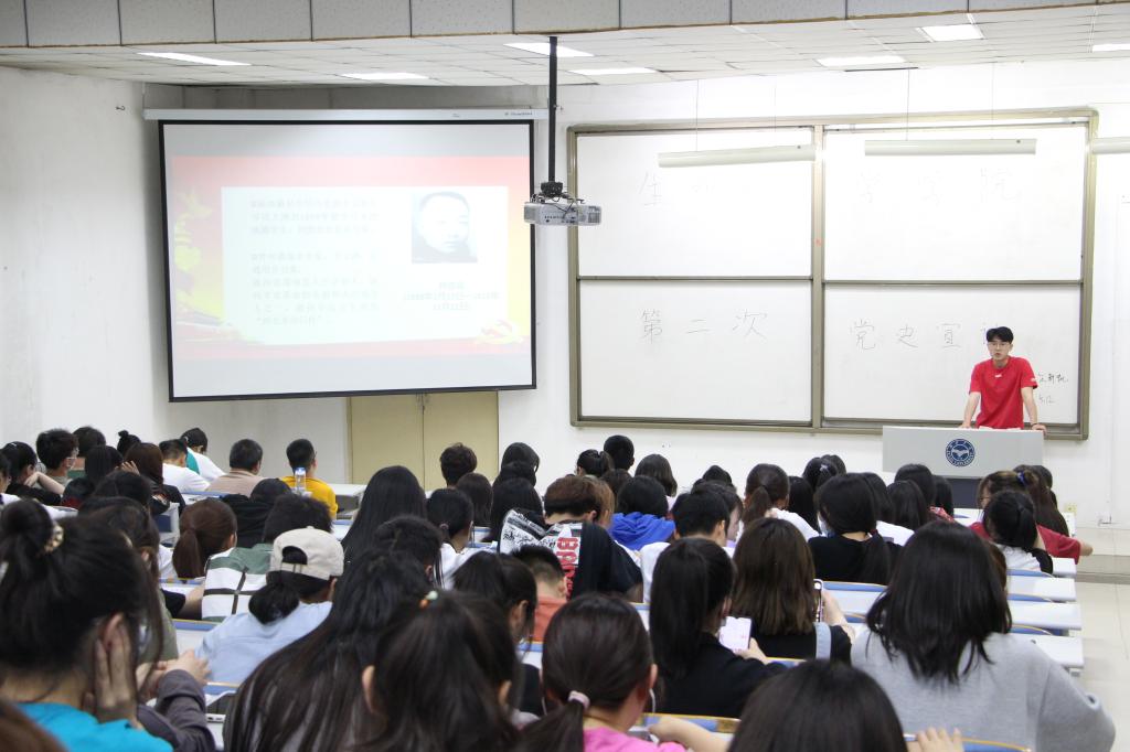 5月12日晚,公司老员工党史学习教育宣讲团成员贺宇璠和王新凯为好博体育19、20级员工进行党史宣讲,本次宣讲的主题是“星火燎原,百年炙热”,宣讲会在5#108和5#202进行。