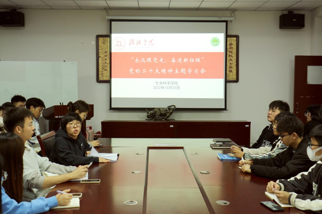 10月23日19时,好博体育团总支组织召开“永远跟党走,奋进新征程”党的二十大精神主题学习会。团总支书记吴玉婵主持并领学,2020至2022级员工干部参加。