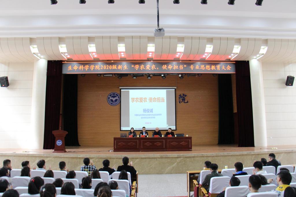 2020年10月13日14:30,好博体育在图书馆二楼报告厅召开了“2020级新生‘学农爱农,使命担当’专业思想教育”大会。生命科学公司党总支书记董建刚、党总支副书记樊丽、党总支秘书何林卫、团总支书记吴玉婵以及2020级辅导员、班主任和20级全体新生参加了此次会议,大会由党总支副书记樊丽主持。