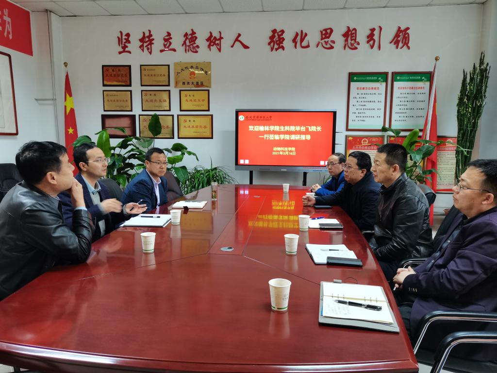 在西北农林科技大学,调研组走访了乡村振兴战略研究院,动物科技公司,猕猴桃试验示范站,科技推广处等单位部门。在乡村振兴战略研究院,经理杨改河围绕乡村振兴发展现状及存在的问题进行分析,双方就乡村振兴领域的合作达成初步意向;在动物科技公司,副经理姜雨分享了与榆林市地方特色产业高度契合的牛羊分子育种成果,双方还就服务当地产业、科学研究、人才培养等领域展开会谈,并达成初步合作框架;调研组一行考察了县域经济猕猴桃试验示范站,有关专家指出猕猴桃产业在带动乡村致富,助力农民增收方面的巨大潜力,并分析了猕猴桃设施化的可行性,提出在陕北特别是榆林建立猕猴桃试验示范基地的意愿;在科技推广处,处长王亚平介绍了西北农林科技大学试验示范站建设,科研成果推广转化,校企地合作等方面的经验,双方就横向项目管理办法,科技推广助力产业振兴交换了意见。