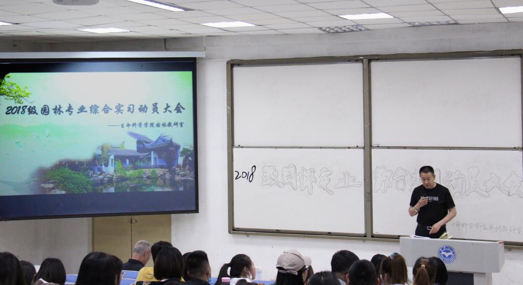 5月10日19时,好博体育于5#101召开18级园林专业综合实习动员大会。生科院经理毕台飞、副经理段义忠出席会议,园林专业教研室全体教师及18级园林专业员工参加会议。