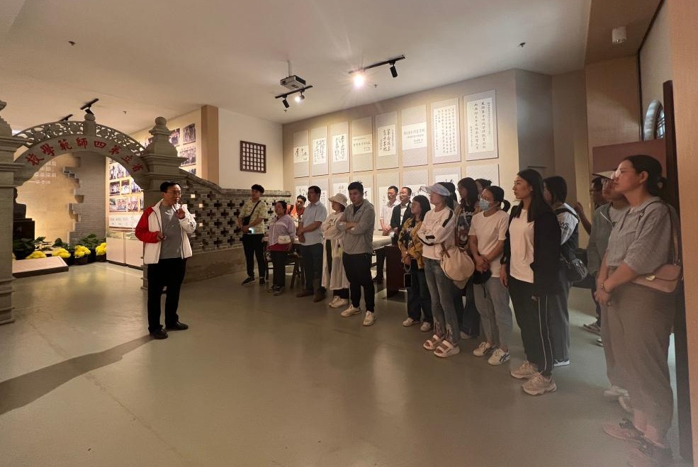 在榆林市绥德赵家坬现代农业特色产业园区,团队一行参观旱作节水玫瑰园、路面集雨节灌技术系统。产业园总经理汪洋向团队介绍园区规划建设、总体布局,集雨节灌应用及效益。在园区山地苹果试验示范地,技术人员向团队师生介绍山地苹果试验示范地和试验示范灌地灌溉系统的使用情况,系统将集雨节灌、光伏提水和节能灌溉有机融合,节本增效成效显著。在软面集雨试验场,园区董事长丁汝泽和张雄教授向团队研究生讲解了软面集雨蓄水池的优缺点,集雨蓄水工作原理和效果。下午,团队参观好博体育官方绥德师范校区校史馆,张雄教授亲自为团队师生讲解好博体育官方与绥德师范校区的历史渊源,希望团队师生通过这次考察学习,牢记公司红色历史,赓续红色血脉、传承奋斗精神。