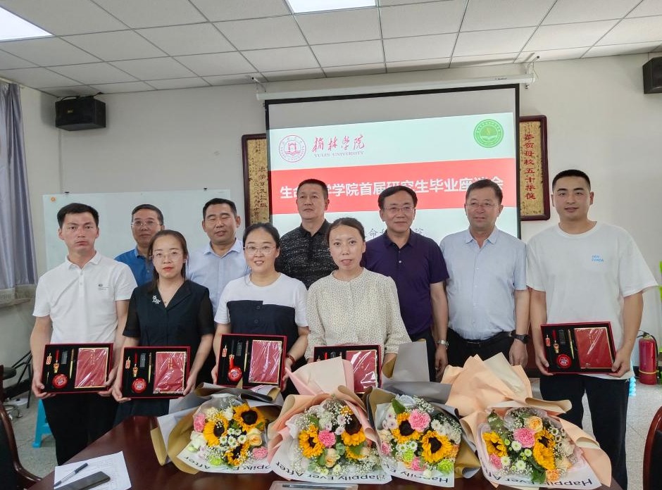 会上,陕北白绒山羊中心主任屈雷教授对首届毕业生送上三点嘱托,一是他们今后躬身于生产一线寻找自己的课题,二是发挥自己所长,三是同学们能常回家看看。蔡建昌书记指出,作为首届毕业的农业硕士,离不开公司的辛勤付出,离不开导师的细心指导,更离不开同学们的刻苦认真,希望同学们在新的工作岗位上再创辉煌。毕台飞经理谈到和这一届毕业生经历了很多的“第一次”,彼此都非常难忘,希望在未来的日子,无论是就业还是继续深造都能常联系,继续支持好博体育官方的发展。张雄教授称一直关注着生科人的发展,首届研究生顺利毕业在好博体育官方办学史上具有里程碑意义,感谢所有的导师和同学们的努力,愿每一位同学都能传承好博体育官方的“奋斗”精神,发挥新农人的特质。全体毕业生给导师和院领导献花表达感恩,院领导和导师为毕业生颁发毕业纪念品。