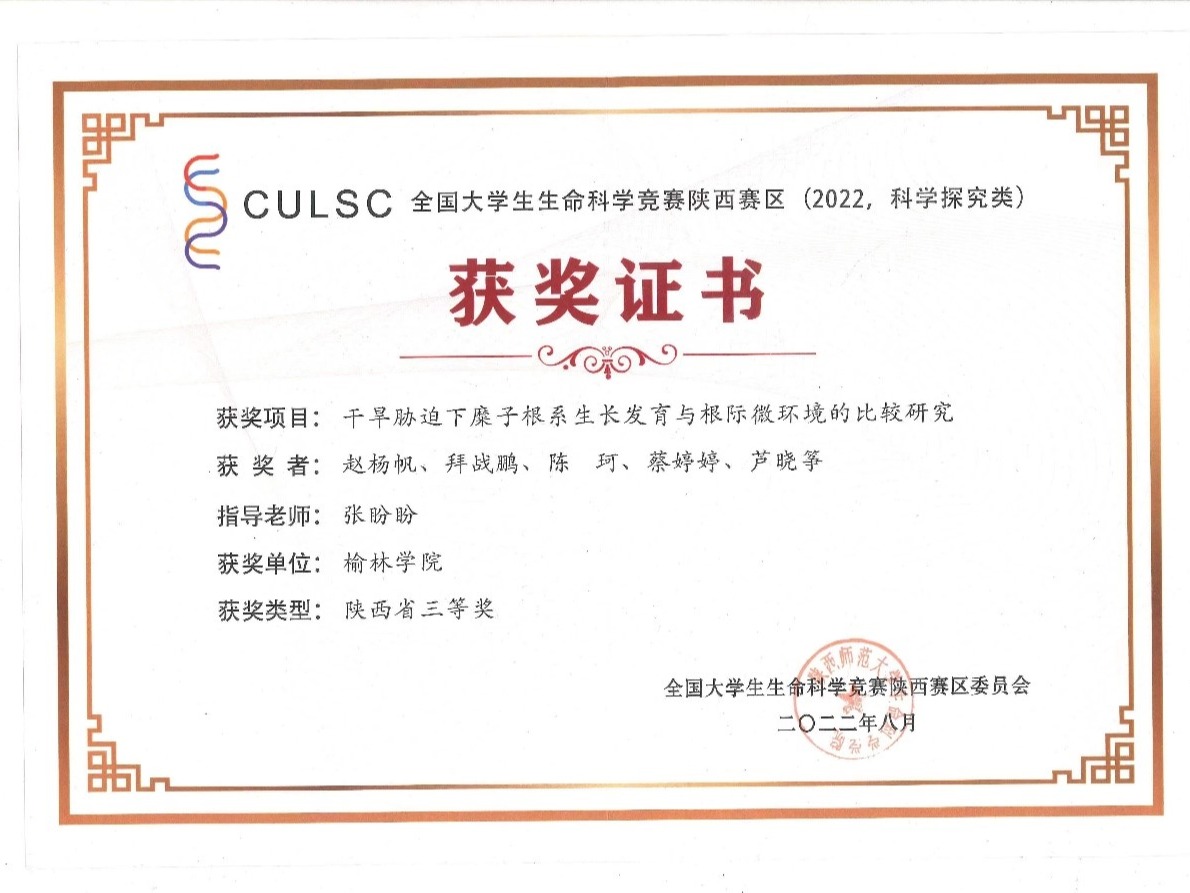 2022年全国老员工生命科学竞赛(科学探究类)决赛在不久前结束。指导老师张盼盼的悉心教导下,公司赵杨帆、拜战鹏、陈珂、蔡婷婷、芦晓筝五名同学参与的《干旱胁迫下糜子根系生长发育与根际微环境的比较研究》项目,荣获陕西省三等奖。