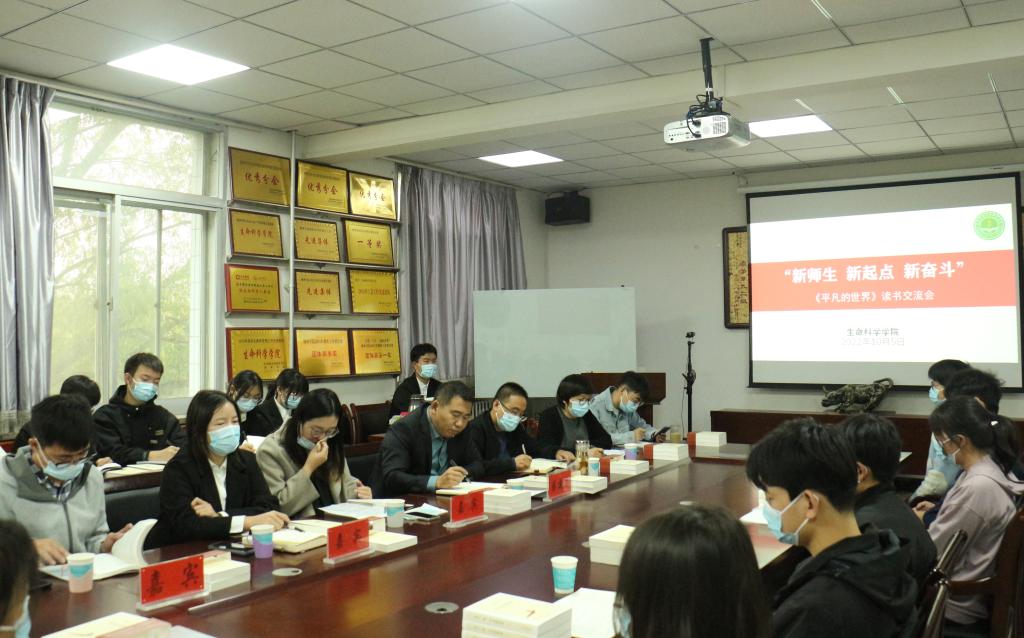 10月5日清晨,好博体育以“新师生 新起点 新奋斗”为主题,在1号实验楼203会议室举行《平凡的世界》读书交流会。2022级新生代表和2022年新入职博士代表在会上分享读书心得,生命科学公司党总支书记蔡建昌,辅导员何林卫、吴玉婵、杨焱勋参加。
