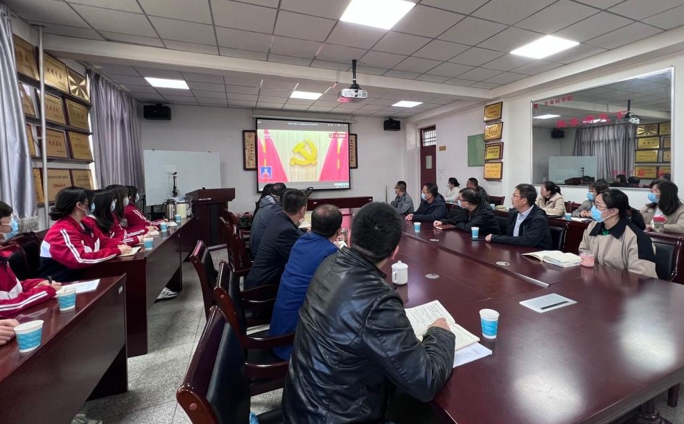 在1S-203会议室,35名师生代表佩戴党徽,统一学习习近平总书记作的大会报告。党总支书记蔡建昌说,党的二十大是在全党全国各族人民迈上全面建设社会主义现代化国家新征程、向第二个百年奋斗目标进军的关键时刻召开的一次十分重要的大会,事关党和国家事业继往开来,我们要深刻领悟“两个确立”的决定性意义,增强“四个意识”、坚定“四个自信”、做到“两个维护”,坚守为党育人、为国育才初心使命,扎实落实立德树人根本任务,用高质量党建引领高质量发展。