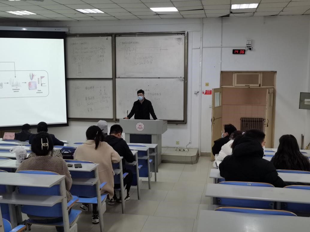 此次讲座分别从“新一代蛋白组学技术介绍”、“新型蛋白质翻译后修饰的概况”、“新型蛋白质翻译后修饰在生命科学领域中的应用”三个方面展开介绍。张晓康强调了蛋白质翻译后具有重要意义,他表示蛋白质组是宏观层面上细胞、组织或机体全部蛋白质的存在及其活动方式。蛋白质组学分析可以揭示生命活动的基本规律,加深对蛋白质调控网络,生物体生理病理及疾病发生发展的认识,同时,许多重要的生命活动又被各类蛋白质翻译后修饰所调控,因此蛋白质翻译后修饰在生命科学领域中的应用意义重大。