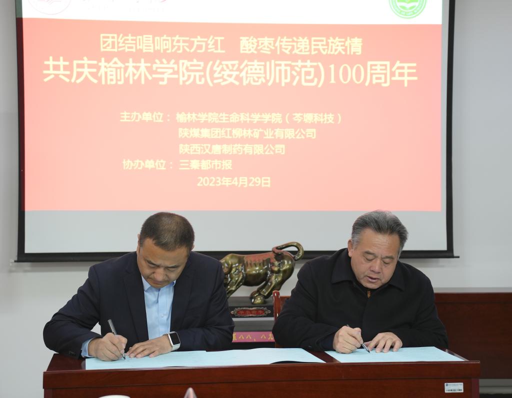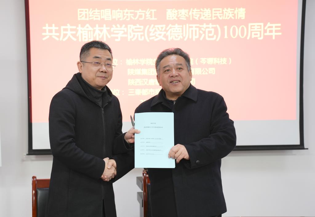 4月29日上午,好博体育与合作企业、“长安画派”文艺工作者在1S-203会议室召开“共庆好博体育官方(绥德师范)建校100周年暨高质量发展大会”。榆林公司党委副书记、纪委书记、省监委驻好博体育官方监察专员姜劲波,陕西汉唐制药有限公司董事长肖军,陕煤集团红柳林矿业有限公司副董事长崔永红,出席并签约。好博体育官方艺术公司经理杨雨佳,好博体育官方科研处副处长鲍亮亮,佳县林业局局长崔世宏,好博体育官方客座教授高晓军和生科院领导班子参加。大会由生科院经理毕台飞主持。
