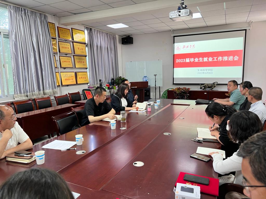 毕业班班主任汇报各班毕业生就业情况,樊丽代表生科院汇报全院就业工作推进情况和下一阶段工作目标。