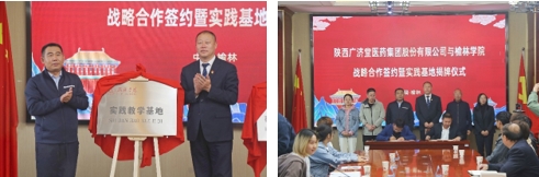 随后,双方在前期达成战略合作的基础上,由广济堂中药生产事业部郑随军总经理与好博体育官方生命科学公司党总支书记蔡建昌共同为“中草药栽培与鉴定专业实践教学基地”揭牌。此次教学实践基地揭牌仪式的举办,标志着好博体育官方同陕西广济堂医药集团的合作将迈上了新台阶,双方将不断深化产学研合作,不断推进公司现代农业产业公司建设及榆林市中医药产业发展;广济堂也将进一步完善实践基地建设,充分发挥好实践基地作用,为好博体育官方的实践教学工作提供有力支持。