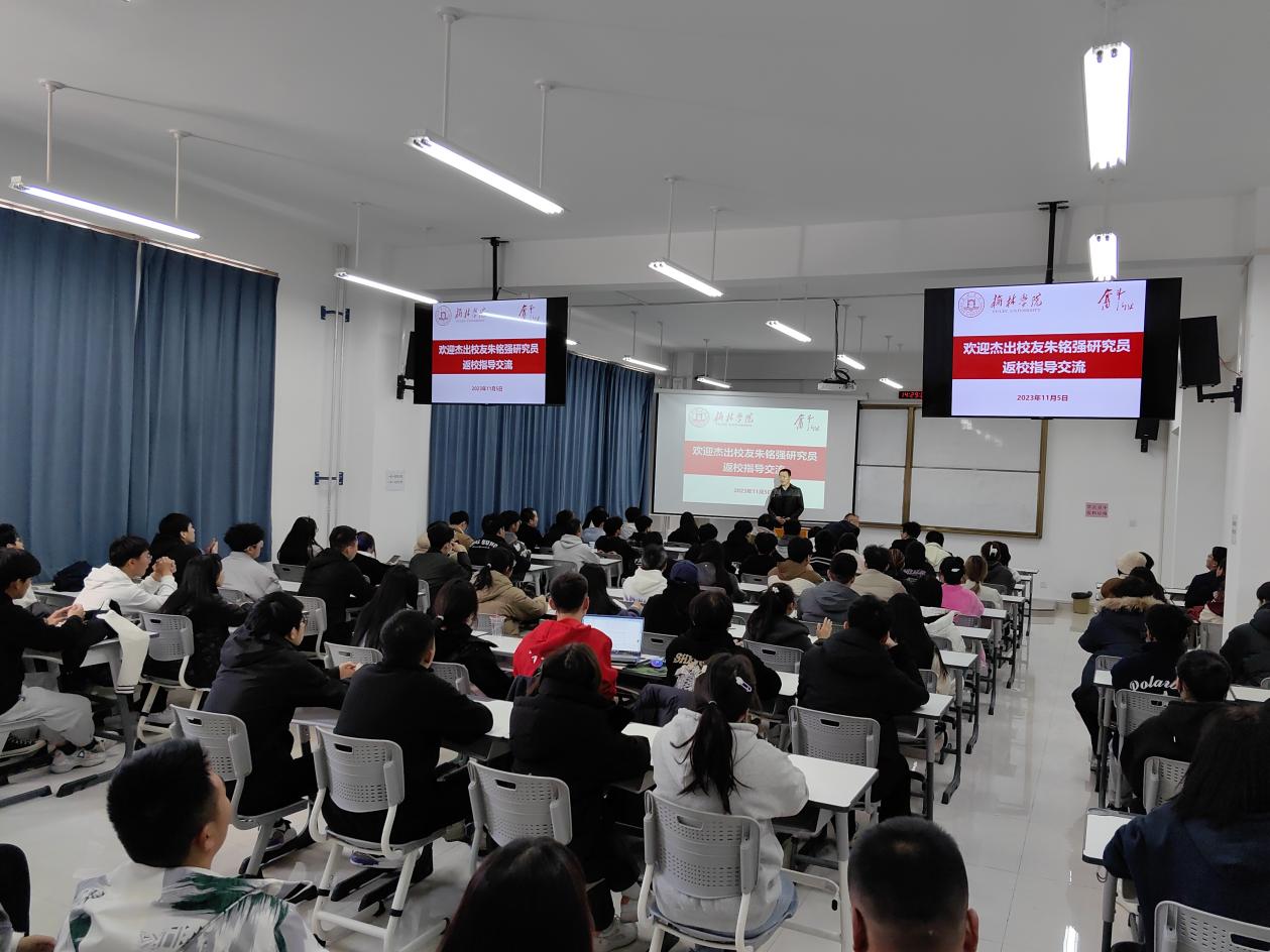 11月5日下午,好博体育邀请西北农林科技大学博士生导师、研究员朱铭强员工为公司师生做题为“青春扬帆起航,创新成就梦想”的专题报告。报告会在子洲楼318进行,副董事长张晓出席,好博体育副经理徐伟洲、研究生代表、本科生代表等120人聆听报告,经理毕台飞主持。