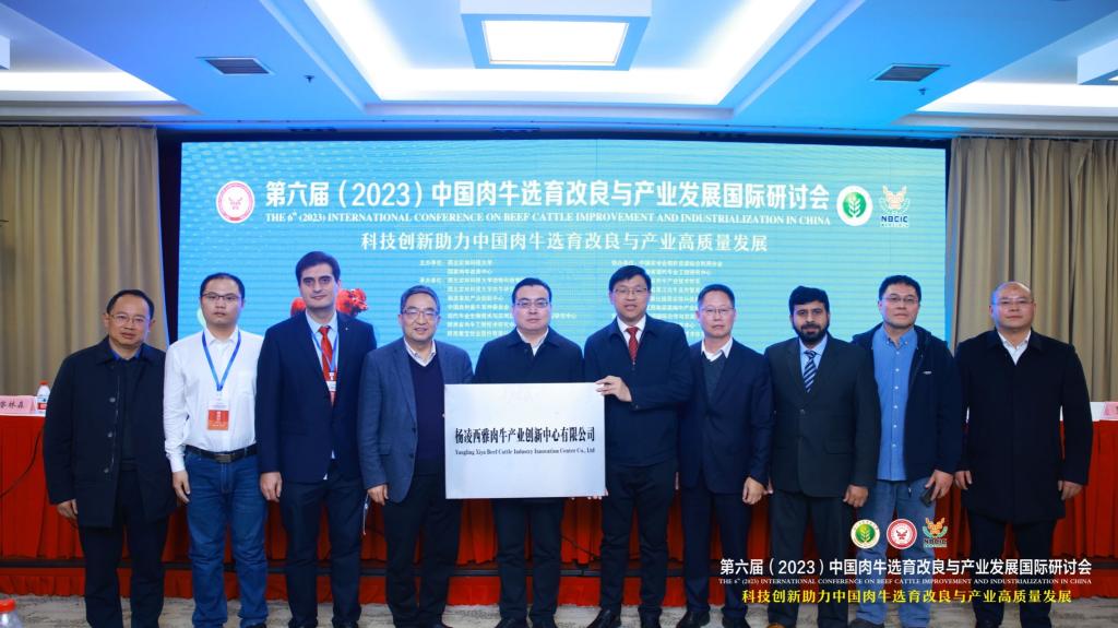 12月1日-12月3日,好博体育经理毕台飞教授带领董书伟副教授、动物科学教研室青年教师梁静、王思虎和冯文博士及畜牧专业硕士研究生参加“第六届(2023)中国肉牛选育改良与产业发展国际研讨会”。大会由西北农林科技大学和国家肉牛改良中心主办,王思虎博士在会上做了题为“中国南方黄牛群体遗传结构与选择信号分析”的学术报告,并参加杨凌西雅肉牛产业创新中心授牌仪式。