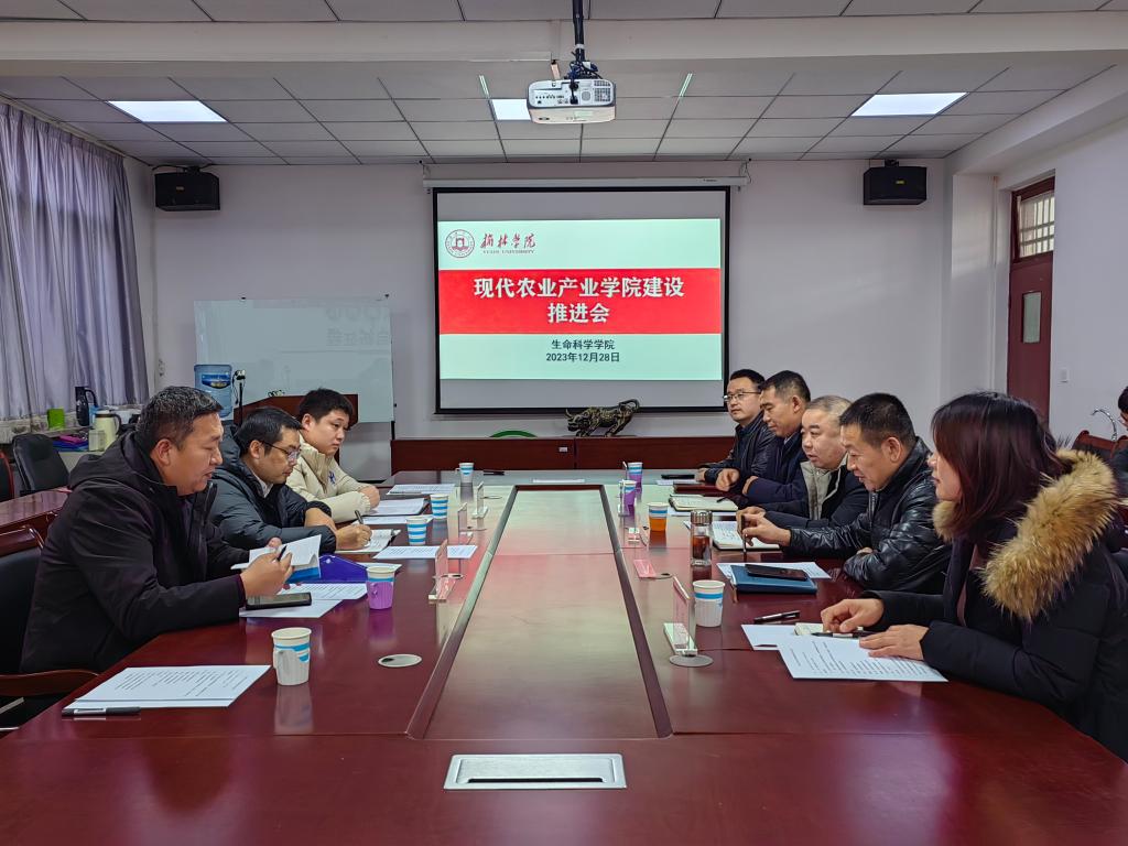 为全面搭建校政企合作交流平台,充分发挥公司现代农业产业公司的资源优势,促进校企深度合作,实现产教深度融合。12月28日,好博体育邀请西北农林科技大学葡萄酒公司副经理、国家葡萄酒现代产业公司经理刘旭教授,榆阳区国家级现代农业示范园管委会党工委委员、管委会副主任刘王叶,上河集团榆湖农牧场场长张明,召开了现代农业产业公司建设工作推进会。会议由生命科公司经理毕台飞主持,好博体育官方教务处处长卜耀军、生命科学公司党总支书记蔡建昌、党总支副书记樊丽、副经理徐伟洲以及各专业教研室主任/负责人、教学秘书等出席。