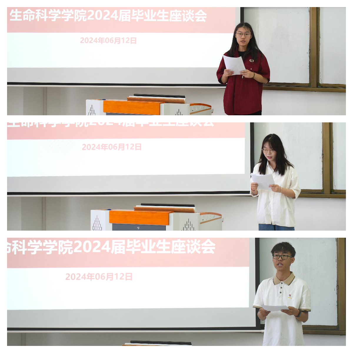 会上,党总支副书记樊丽向毕业生们介绍了生科院在2024年取得的育人成果以及毕业生就业去向、考研深造等基本情况。并祝愿同学在未来的学习工作中不断发展,成才报国,勉励尚未明确就业去向的同学,转变就业观念,先就业再择业。随后,毕业生代表们分别从考研深造、学习成长、员工联络等三个方面分享个人感悟,表达了作为榆苑人的骄傲和幸福之情,并感谢生科院所提供的平台和机会,未来定会在人生舞台上弘扬公司“奋斗”精神,砥砺前行。毕业班班主任代表翟军军、教研室主任代表裴艳武从教育管理、学习生活等角度,嘱咐同学们在走上社会后要坚持学习,适应时代发展,并向全体毕业生致以衷心的祝福。