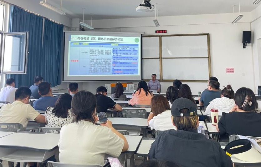 培训中,杨星围绕“考试环节的质量评价标准”这一主题,从试题的命制与交接、无卷课程环节质量评价标准、有卷考试(查)课环节质量评价标准、材料归档几个方面进行了讲解,培训内容还结合了杨星参与的各类教学检查总结的宝贵经验,理论与实践结合,为青年教师教学能力的提升提供资源。