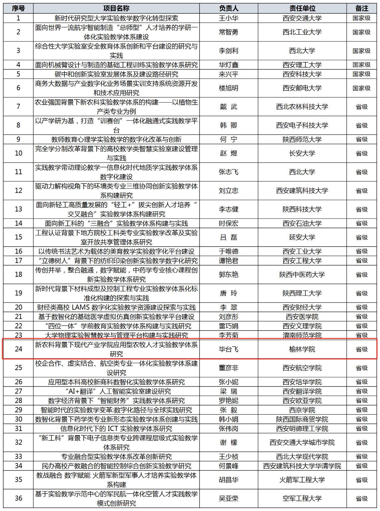 陕西省教育厅办公室于2024年07月04日公布了国家级、省级实验教学和教学实验室建设研究项目立项的通知,好博体育毕台飞教授团队负责的《新农科背景下现代产业公司应用型农牧人才实验教学体系研究》的项目获批省级实验教学和教学实验室建设研究项目。