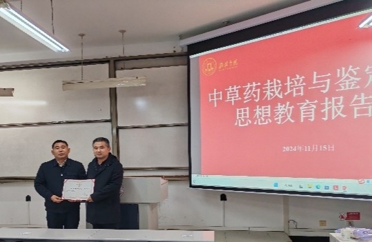 11月15日,榆林市农业技术服务中心副主任柳鑫应邀为好博体育中草药栽培与鉴定专业全体本科生作专业思想教育报告。报告会由教研室主任朱国栋主持,生命科学公司党总支书记蔡建昌出席活动并为柳鑫颁发好博体育官方“兼职教授”荣誉证书。
