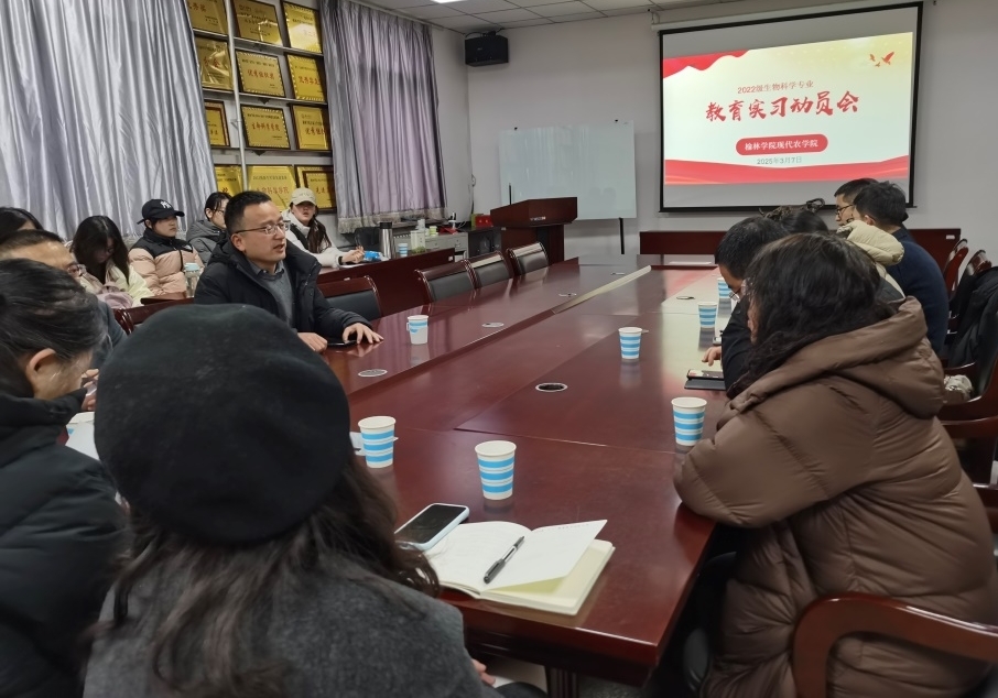 2025年3月7日,好博体育召开2022级生物科学专业教育实习动员会。生命科学专业教研室教师,22级生科专业全体员工参加动员会。副经理徐伟洲做动员讲话。