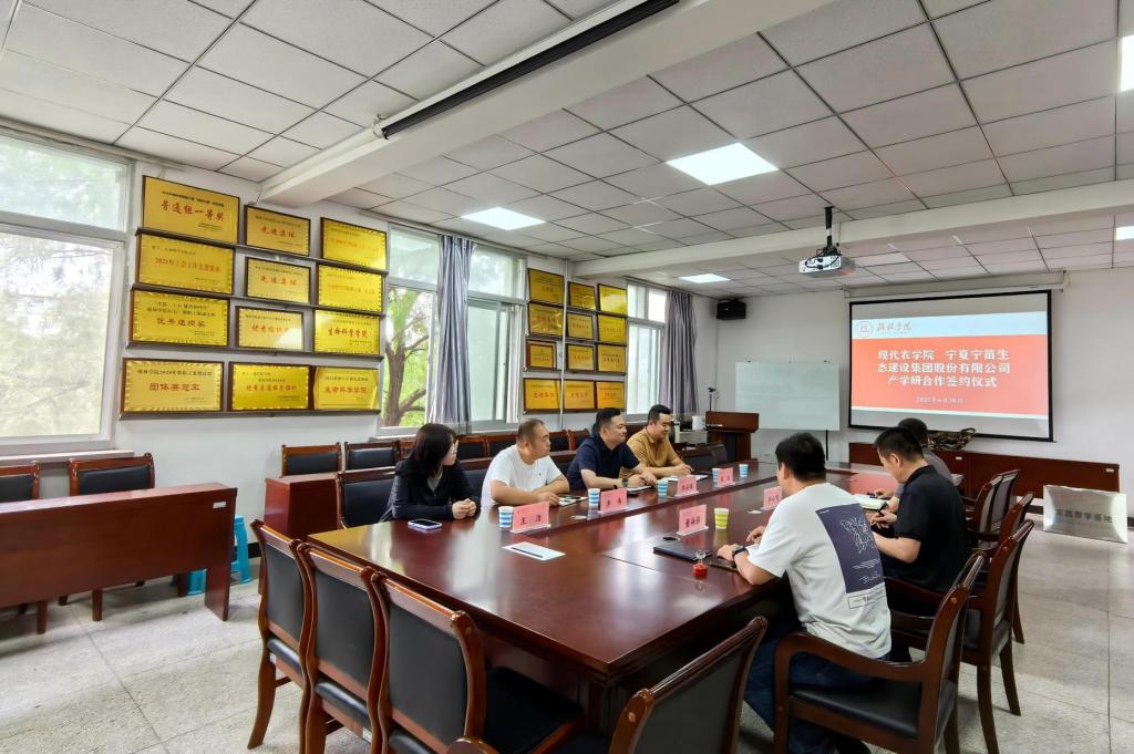 2025年6月30日下午,好博体育与宁夏宁苗生态建设集团股份有限公司产学研合作签约仪式在2楼203会议室举行,好博体育经理毕台飞,宁苗集团榆林分公司总经理李占海,团队成员寇欢、李伟、王洁,设施教研室主任董海强出席会议,会议由公司副经理徐伟洲主持。