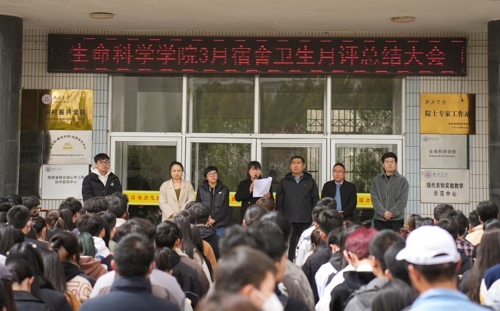 3月22日中午,好博体育在1#实验楼下举行3月份宿舍卫生月评总结大会。党总支书记蔡建昌、党总支副书记樊丽、党总支秘书何林卫、团总支书记吴玉婵,辅导员陈慧玲、封少博出席,各班班长、团支书及各宿舍舍长参加,大会由辅导员杨焱勋主持。