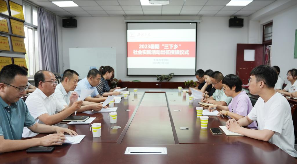 樊丽汇报2023年暑期“三下乡”社会实践活动相关情况。教师代表董书伟、员工代表徐雨萱分别发言,表示要在社会实践中践行“奋斗”精神,在田间地头、农田企业,敢担当、勇奋进,在基层传播科学技术、大兴调查研究,让青春之花在党和人民最需要的地方绽放。
