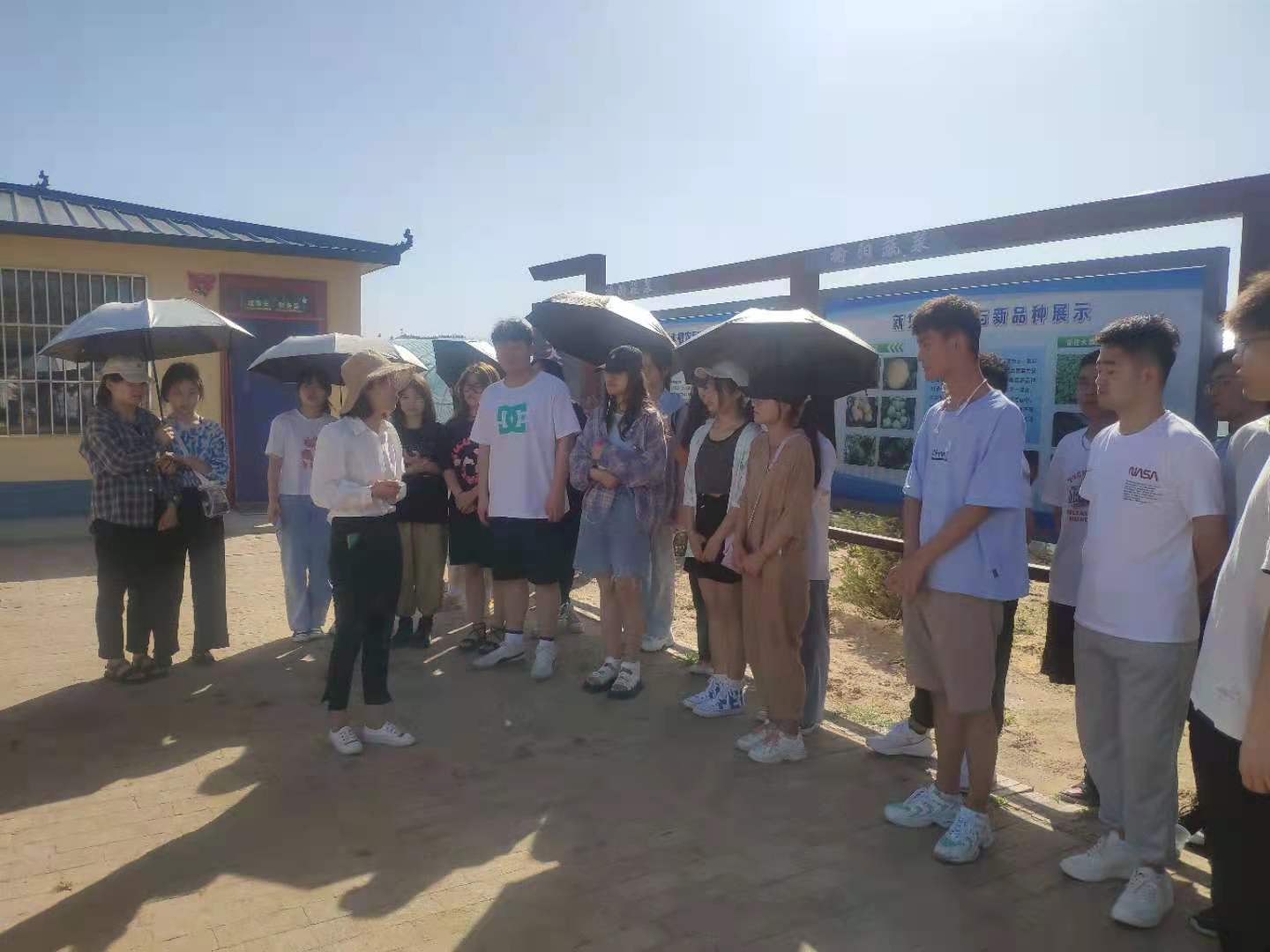 在设施瓜果蔬菜基地,榆林市农业局园艺站高级农艺师高竹艳同基地相关管理人员向同学们介绍了设施甜瓜和番茄的温室大棚建造特点,栽培管理技术、工厂化育苗和病虫害防治技术。基地病虫害防控技术上主要采用物理防治和生物防治法,同学们还品尝了基地采摘的香瓜,并对香瓜的品质赞不绝口,激起了大家对优良品质香瓜培育的兴趣。