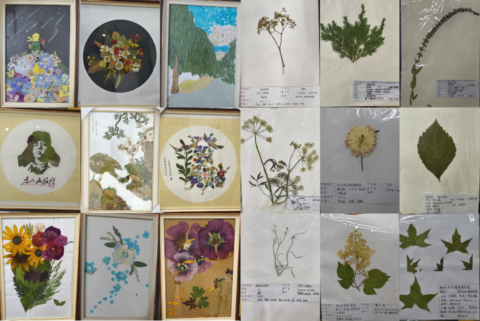 本次植物学实习内容为常见植物识别、植物鉴定、植物学形态术语描述、标本采集、标本制作、检索表制作和植物鉴定考核等。在老师的引导下,同学们深入实地,认真识别植物种类,详细记录植物特征,采集植物标本。实习结束后,同学们充分发挥创造力与实践技能,将采集的植物制作成精美的压花画和标本。这些成果不仅是实习实践的生动记录,更是同学们对植物学研究热忱与探索精神的具象结晶。