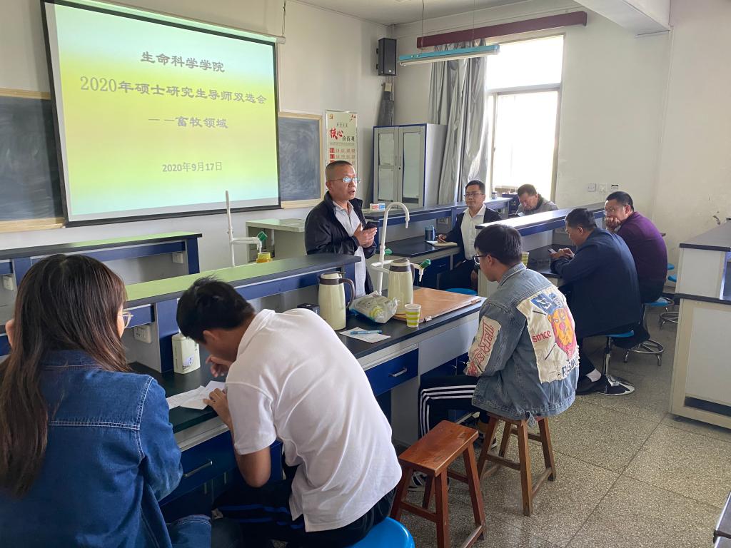 2020年9月17日下午2点30分,好博体育农艺与种业领域和畜牧领域2020级硕士研究生导师双选会分别在203会议室和311教室召开。研究生处处长张雄、好博体育经理卜耀军、陕西省陕北绒山羊工程技术研究中心主任屈雷、好博体育副经理孙旺斌、好博体育副经理段义忠、公司硕士研究生导师及2020级硕士研究生参加会议。