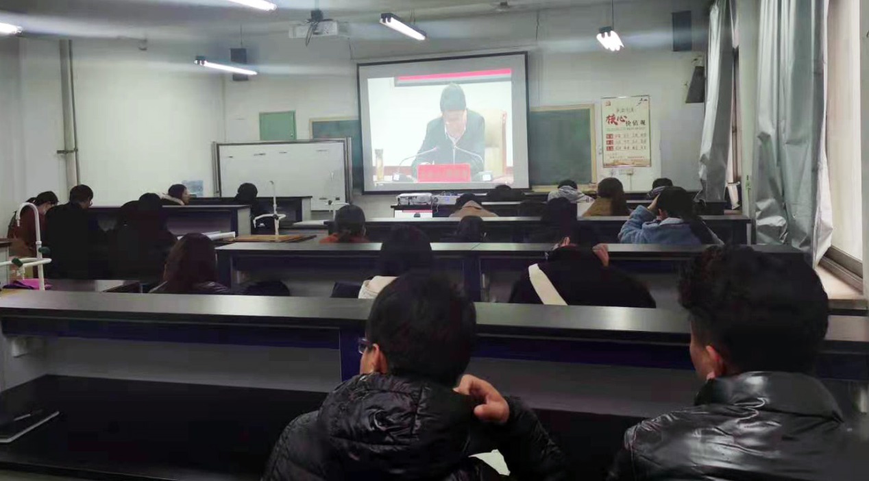 为学习贯彻好习近平总书记在党史学习教育动员大会上的重要讲话精神,2月28日下午,由公司党委书记张新柱同志主讲的“跟着习近平总书记学党史”党史课在校逸夫楼一楼报告厅开讲,一万四千多名师生通过线上线下聆听报告会,公司全体研究生在1S311教室听取了报告会。报告会由党委副书记、董事长许云华主持。