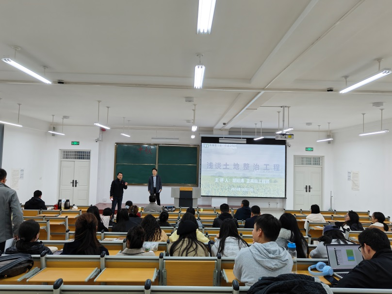 10月21日下午,陕西省土地工程建设集团西北分公司党委副书记、总经理,好博体育官方客座教授胡延涛正高级工程师为公司好博体育研究生作《浅谈土地整治工程》报告,好博体育副经理严加坤主持此次活动,好博体育经理毕台飞、副教授王小林参加活动,全体农艺与种业研究生聆听报告。