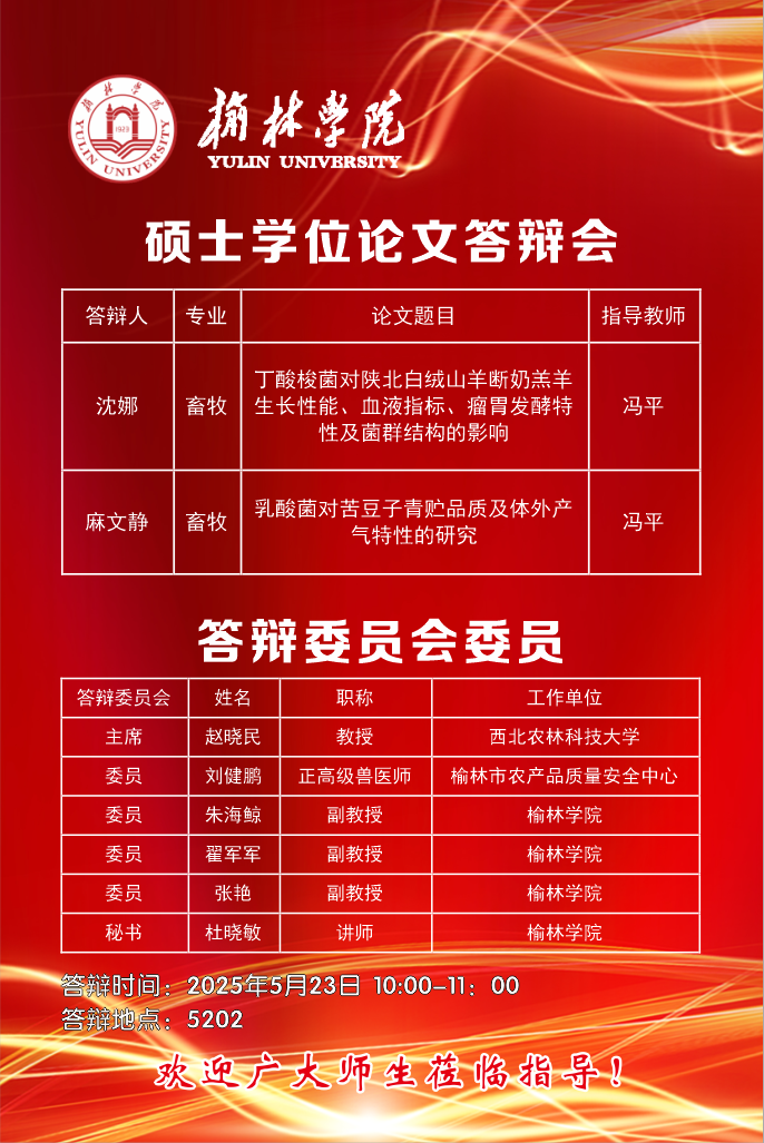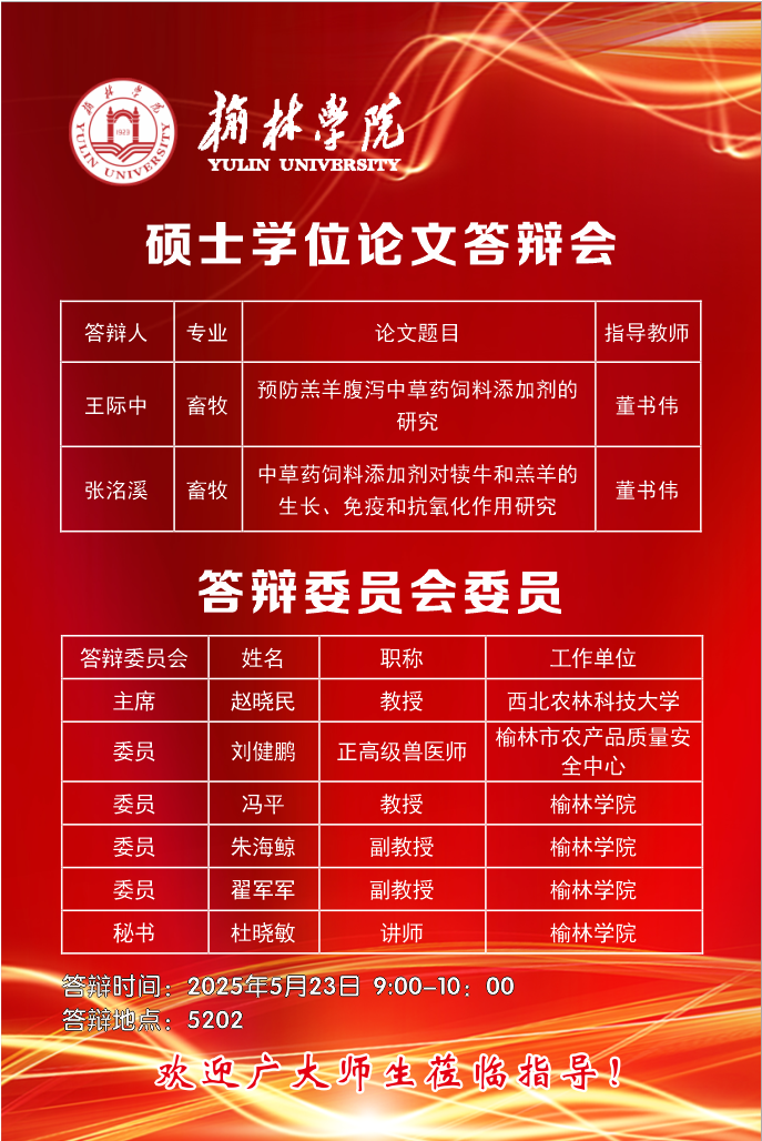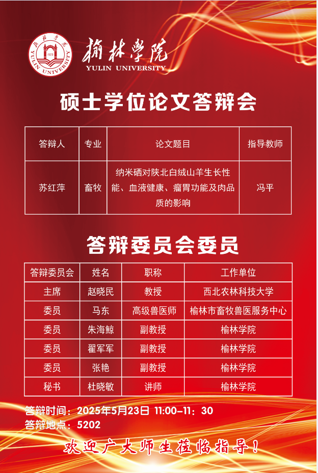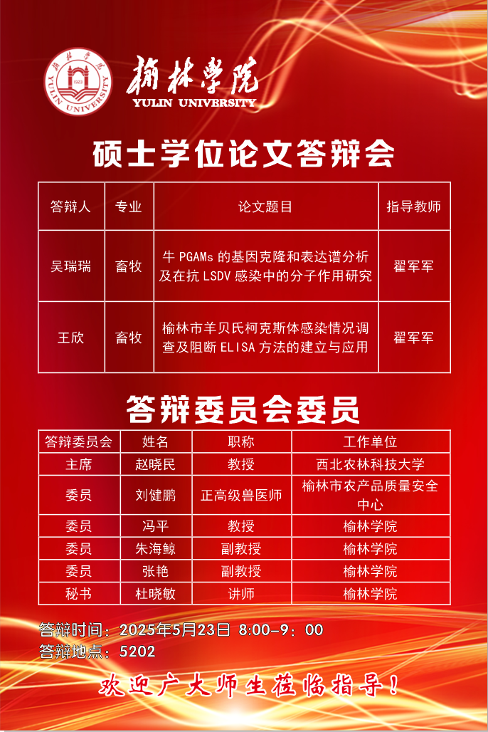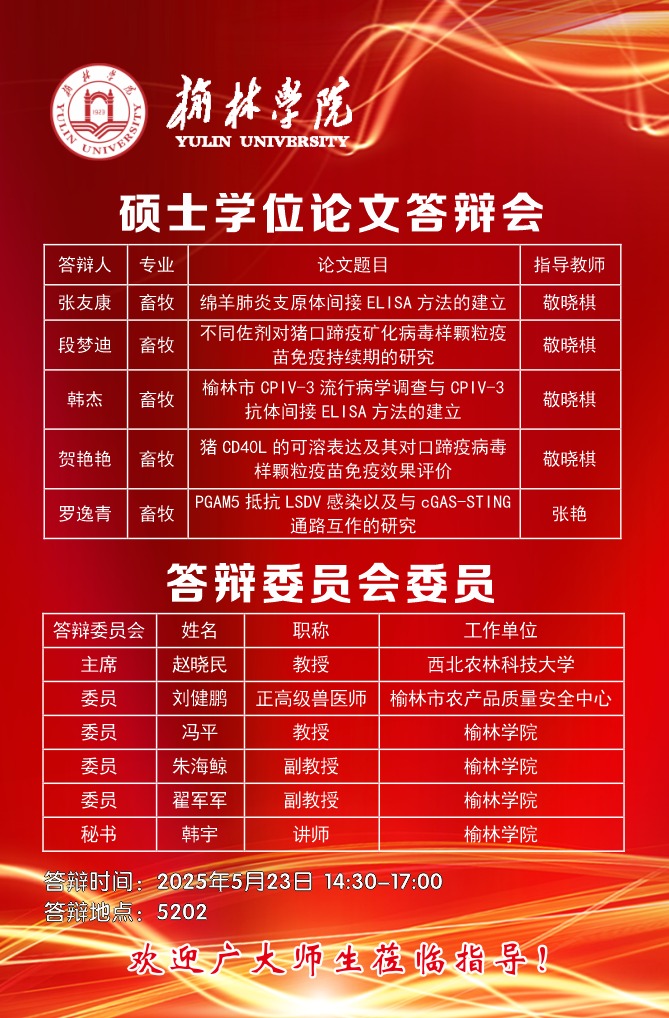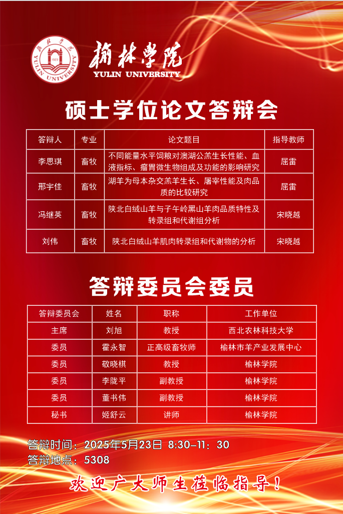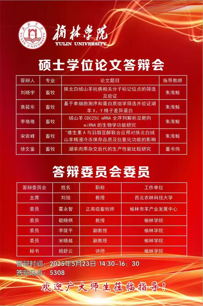 2025届畜牧专业硕士研究生学位论文答辩具体安排如下: